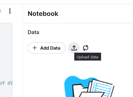왼쪽에 '코드' > '+ New Notebook' > 오른쪽에 'upload data' 또는 'File' > ' upload data ' >하고 .csv 파일을 업로드 하면 됨.
