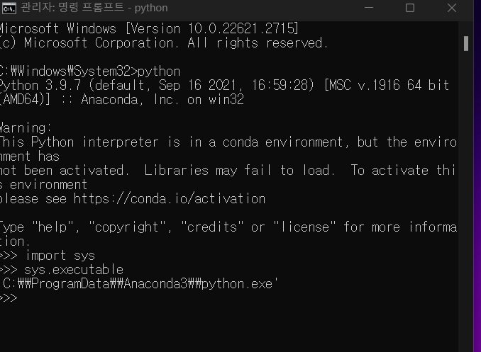 근데 이 방법은 가장 처음에 설치한 파이썬만 조회함. 나처럼 파이썬이 여러 개 설치된 경우에는 가장 최근에 설치한 파이썬을 찾을 수 없음.