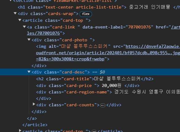 [크롤링 예제]당근마켓 크롤링하기 본문