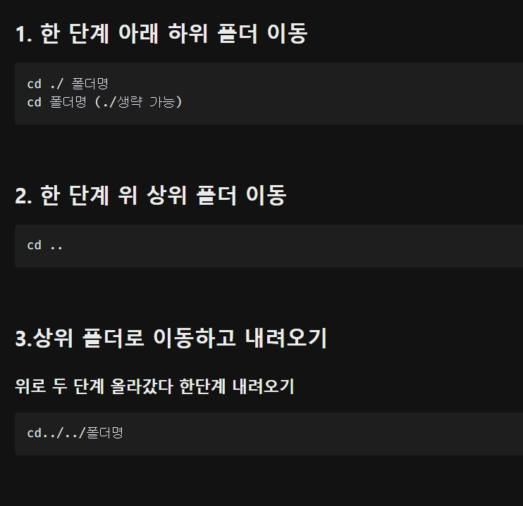 개발하면서 터미널로 폴더 이동을 한다. 자연스레 명령어를 익히게 되었는데, 정식으로 배운 것은 아니라서 정식으로 정리해보고자 한다.