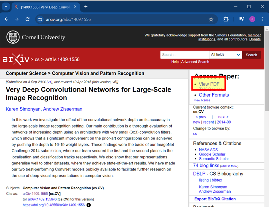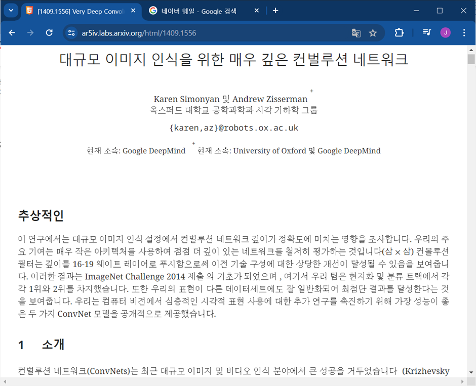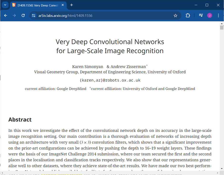 URL의 ‘arxiv’를 ‘ar5iu’로 수정하면 아래처럼 새로운 창이 뜹니다. (예시: https://ar5iv.labs.arxiv.org/html/1409.1556)