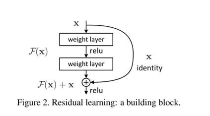 - F + x 연산이 shortcut connection을 의미하고 element-wise addition임