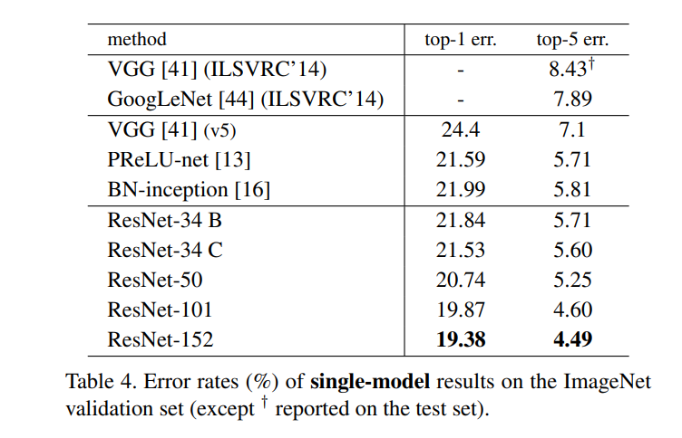 ( Deeper neural networks are more difficult to train. We present a residual learning framework to ease the training of networks that are substantially deeper than those used previously. We explicitly reformulate the layers as learning residual functions with reference to the layer inputs, instead of learning unreferenced functions. We provide comprehensive empirical evidence showing that these residual networks are easier to optimize, and can gain accuracy from considerably increased depth. On the ImageNet dataset we evaluate residual nets with a depth of up to 152 layers—8× deeper than VGG nets [41] but still having lower complexity. An ensemble of these residual nets achieves 3.57% error on the ImageNet test set. )