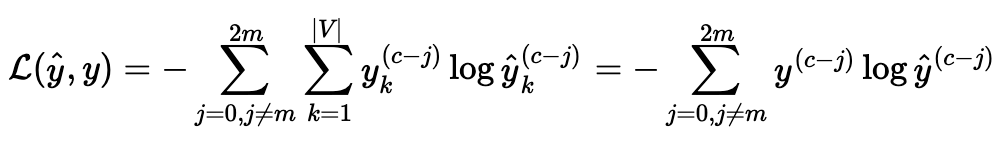 5. (Loss) y hat을 각 문맥 단어들의 one-hot vector인 y와 오차 측정합니다.