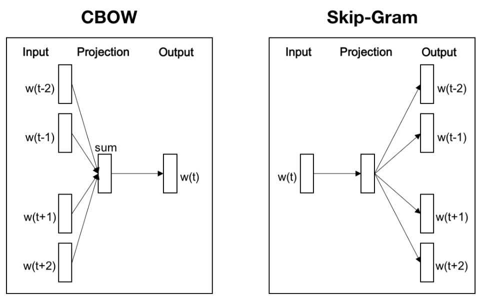 - 두 모델은 입력으로 주어진 단어를 N차원의 벡터로 투영한 뒤,