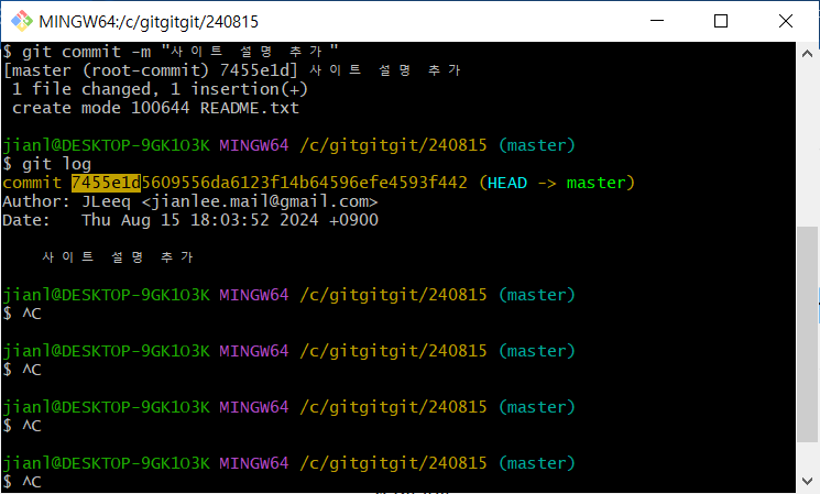 $ git commit -m "사이트 설명 추가"