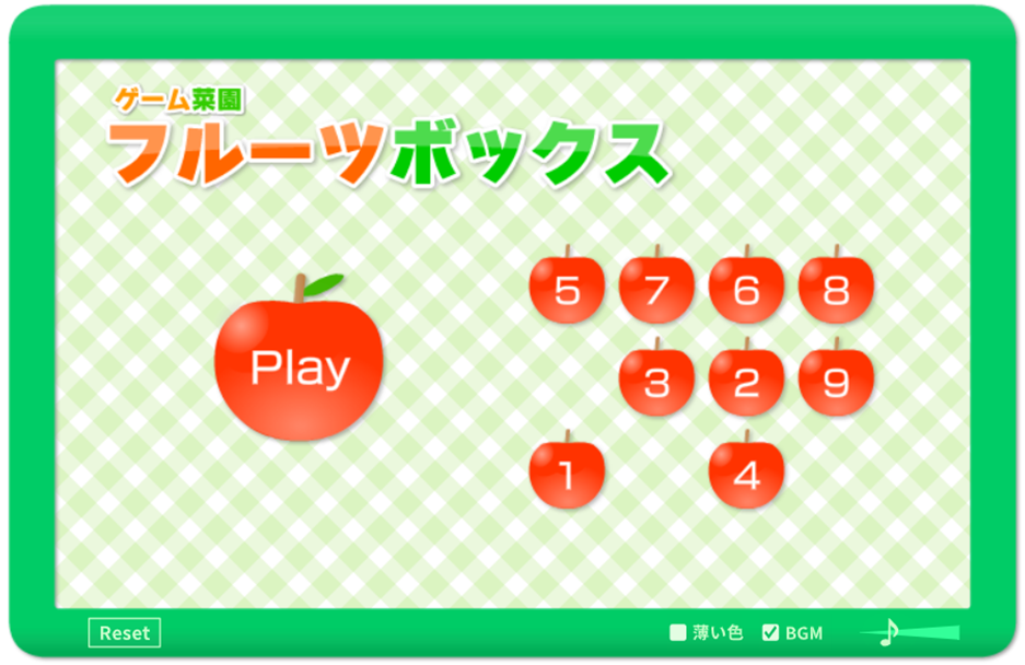 画面上をマウスでドラッグして、数字の合計が10になるようにリンゴを囲むパズルゲームです。(説明) iPadやAndroidタブレットでも動作します。