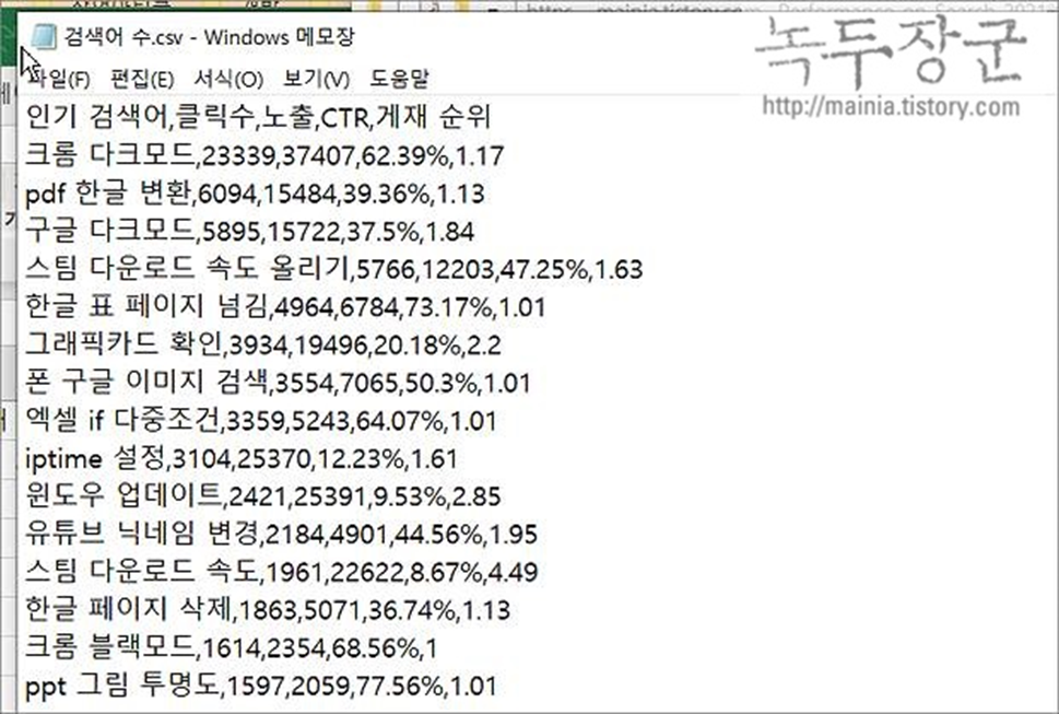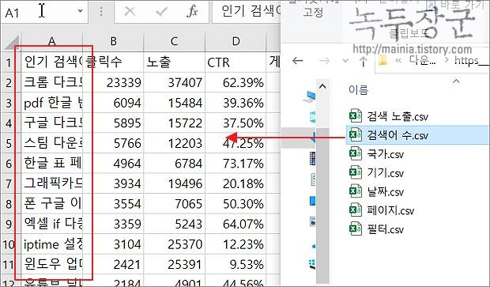 ▼ 저장한 파일을 엑셀로 다시 열어 보세요. 이전에 깨졌던 텍스트가 정상적으로 보일 겁니다. 만약 기존 ANSI 파일이라면 반대로 UTF-9 로 변경해 보세요.
