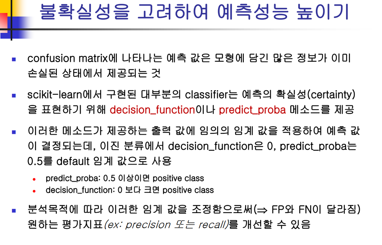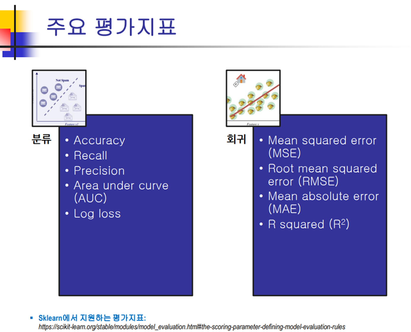 - 이 때 다양한 평가지표와 도식을 활용하는데, 머신러닝 애플리케이션의 목적이나 데이터 특성에 따라 적절한 성능지표(performance measure)를 선 택해야 한다.