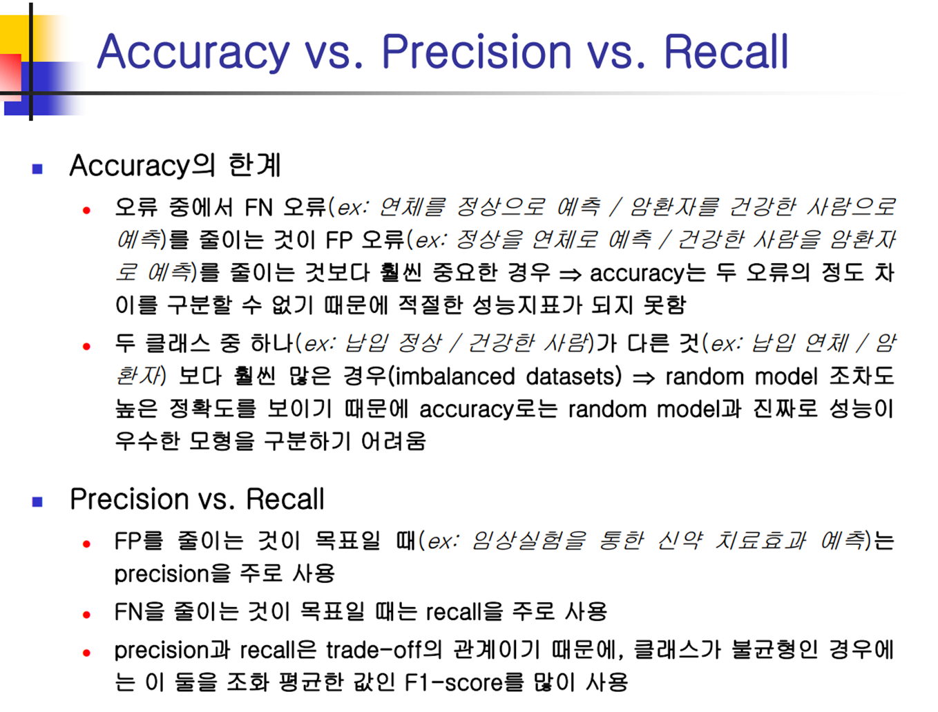 - (정확성) 모형이 실제 문제에 적용될 수 있을 만큼 충분한 성능이 나오는가?